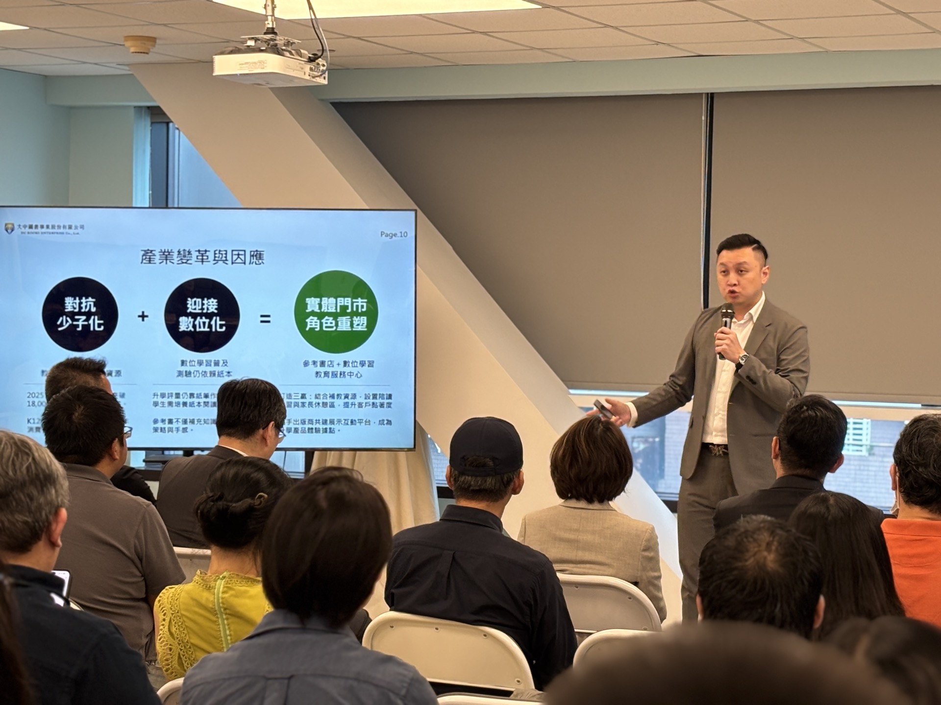 「大中圖書事業股份有限公司」(股票代號:7652)董事長劉彥甫於座談會中,分享公司深耕K12教育通路四十載的成長歷程。他指出,儘管面臨少子化與數位化挑戰,台灣補習班數量卻逆勢成長,據統計已達1.75萬家,比便利商店還多。另外,學生從國小至高中階段花費在購買升學參考書與測驗試卷的人均累計消費總額超過新台幣 20 萬元,代表家長更願意投資小孩的未來,教育升學市場具有不可替代的龐大剛性需求。