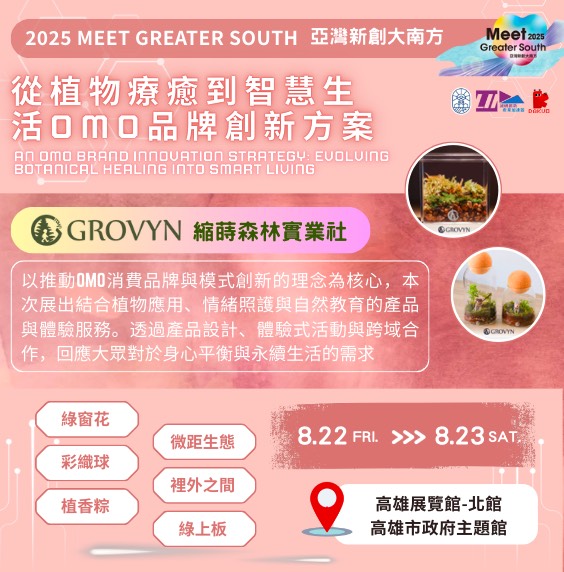 以推動OMO消費品牌與模式創新的理念為核心,本次展出結合植物應用、情緒照護與自然教育的產品與體驗服務。透過產品設計、體驗式活動與跨域合作,回應大眾對於身心平衡與永續生活的需求。