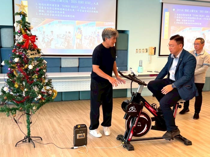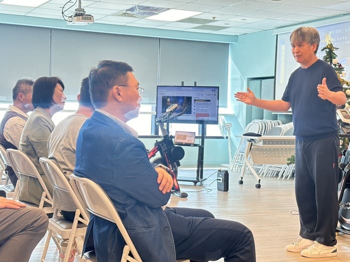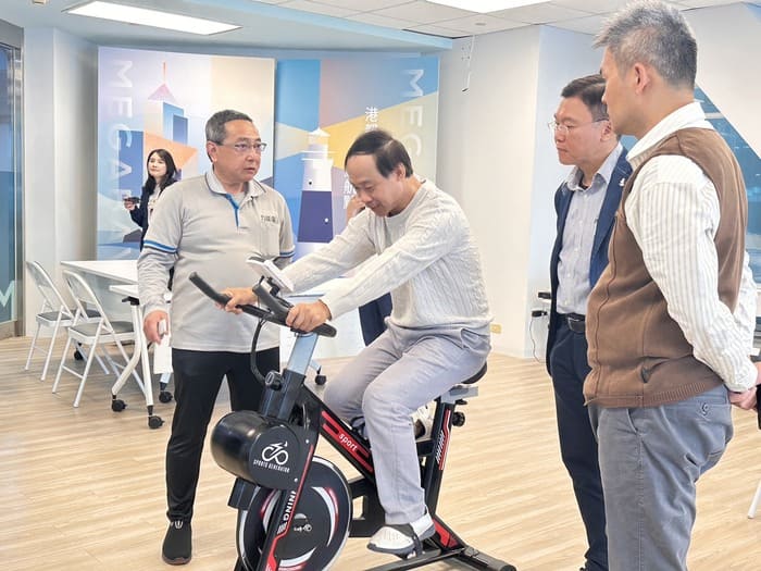 此次參訪亮點為力能電團隊研發的「智慧動能發電飛輪車」。不同於傳統健身器材或僅能點亮燈泡的簡易教具,力能電高德明營運長在展示中指出,這套設備導入微電網與儲能概念,能將踩踏動能即時轉化為電力,不僅瞬間功率可達1kW以上,更具備穩定輸出110V交流電(AC)的能力。